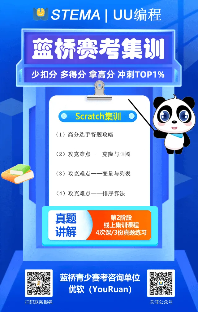 有意参加STEMA考试报名的同学们,可联系UU老师安排Scratch组别考前集训冲刺TOP1%。